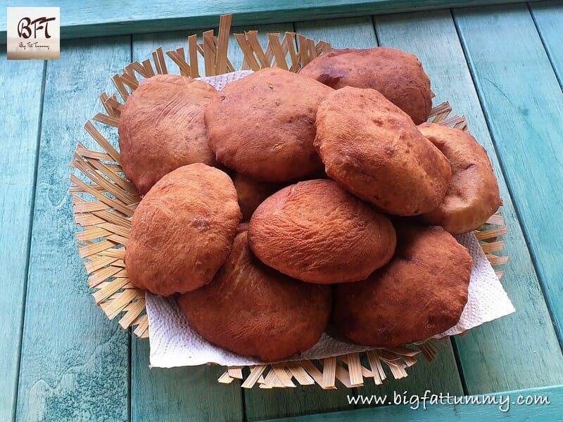 The Fried Banana Buns are a popular Goan and Mangalorean snack. The main ingredients for these buns are flour and ripe bananas. The buns are fried and served mostly at breakfast. They are eaten plain or with some breakfast bhaji (lentil preparations – quite a few here on this blog). Some prefer to eat it with white coconut chutney too.
