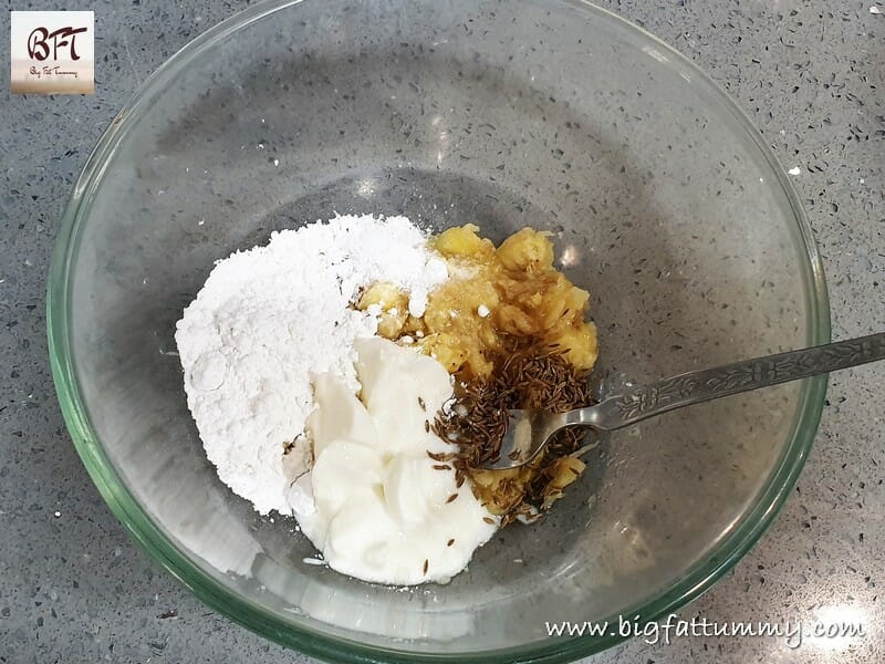 Step 1: Take a bowl and peel and mash the banana. Add the sugar, curds, jeera and salt and mix well with a fork till a smooth mixture is formed.