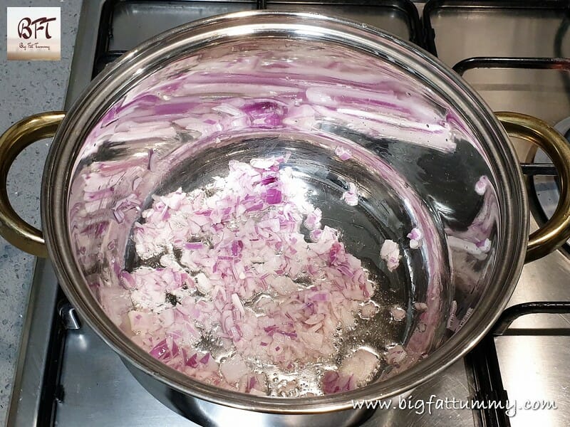 Step 2:     Heat the oil in a pot and then add the onions and sauté till translucent.