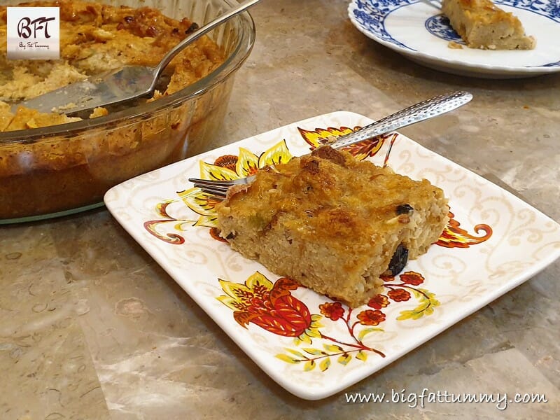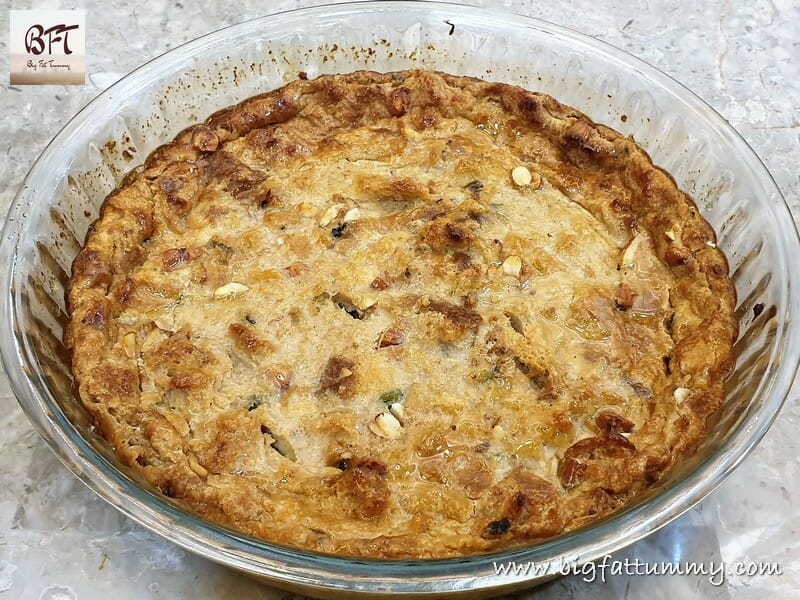 The Hot Cross Bun Pudding has been made with the left over Hot Cross Buns (Click here). But you can also make it with plain bread by adding a few raisins. It is very easy to make and tastes delicious. I have used brown sugar in the recipe but you can also use regular sugar if you don’t have it. (For more Pudding Recipes, click here)