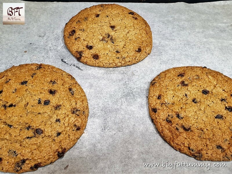 With the kids at home all of the 24 hours amidst the COVID-9 lockdown in India, the easy recipe for the Jumbo Chewy Chocochip Cookies came very much to my rescue. These are not too rich – Just the right amount. And I was able to make these cookies to satiate their snack cravings in a jiffy. Thankfully, I had a stock of the ingredients used here. Many an avid baker will also have these few ingredients at hand and I’m sure you’ll like to make these quick cookies. BTW, we shared the three cookies, one for Sam, one for Ivan and Sean and I shared half each 🙂