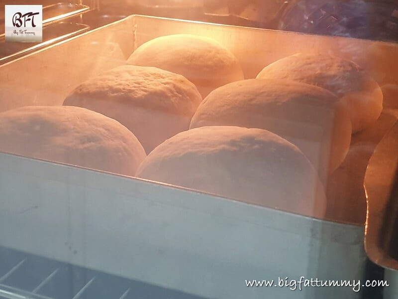 Step 7:     When ready, pre-heat your oven to 250° C for 20 to 25 minutes. Then place the tray into the oven and bake at the same temperature for 20 minutes or till well browned. Switch off the oven and open the oven door 2 to 3 inches and leave in the oven for another 5 minutes.