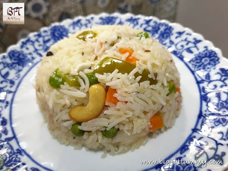 This is a recipe for a One Pot Vegetable Pulao. It is an easy to make pulao where are the ingredients are added in the same pot and that includes the rice too. For a recipe where rice is cooked separately and added, check out the Vegetable Pulao here.