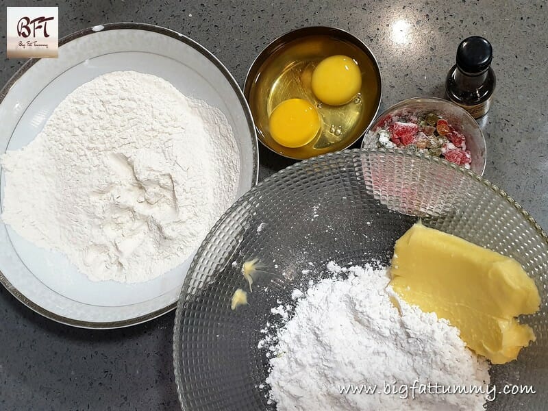 Step 1: Coat the tooti frooti / tutti frutti with 1 tsp. flour and keep aside.
