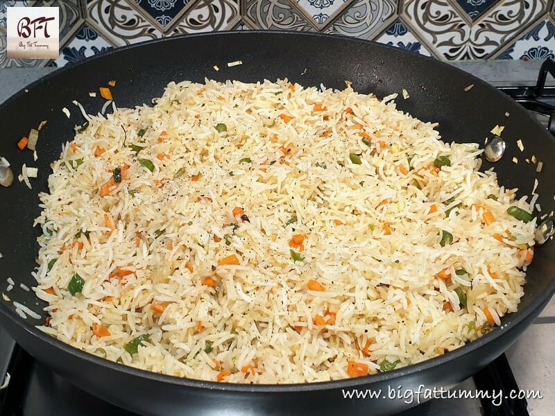 Step 7: Finally sprinkle the crushed pepper and continue to toss for another 2 to 3 minutes on high heat. Serve hot. (For other variations of fried rice click here)