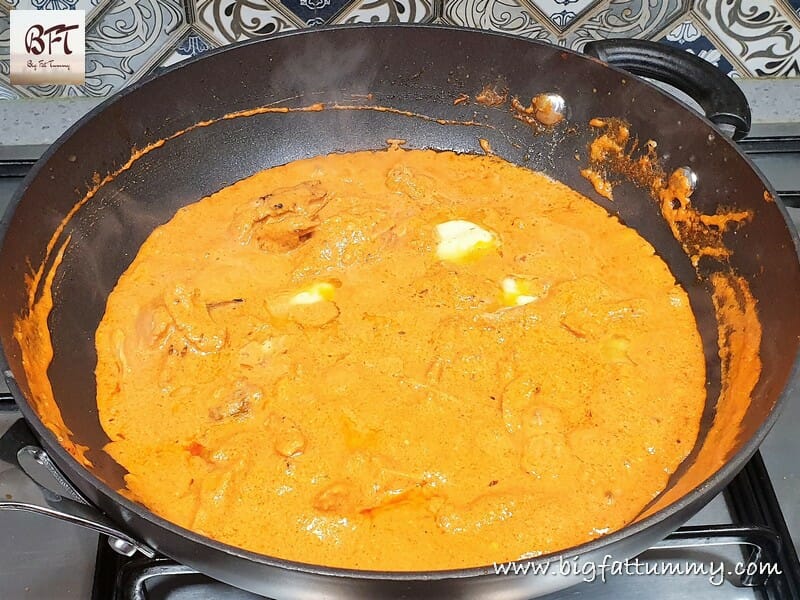 Step 7: Finally, add the salt, sugar and the juice of the lime and mix. Switch off the heat and add the 2 tbsp. of butter. Mix and serve garnished with the milk cream. Goes very well with tandoori rotis (coming soon) or tawa parathas (click here)