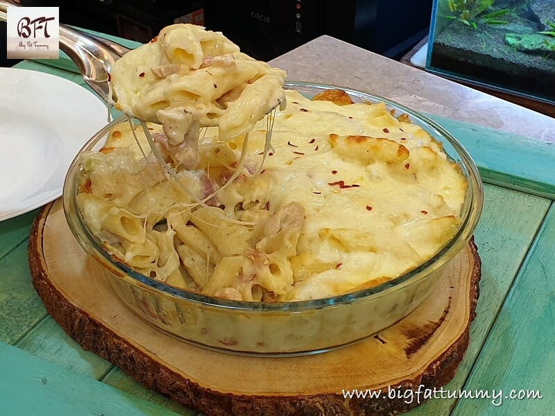 For the Chicken & Bacon Pasta Bake, we cook the chicken, bacon and pasta. Then we prepare a creamy sauce. We then bring all the elements together, top with mozzarella cheese and bake in the oven. The resultant dish is a delectable pie that’s cheesy and with the right balance of Italian herbs that tantalize your taste buds and keep you yearning for more and more. (For more recipes with Pasta, click here or for other pie recipes, click here)