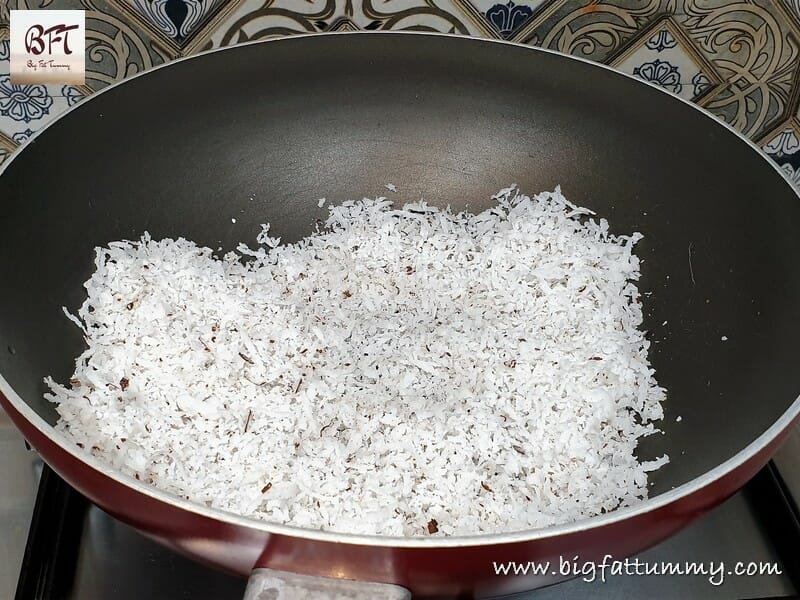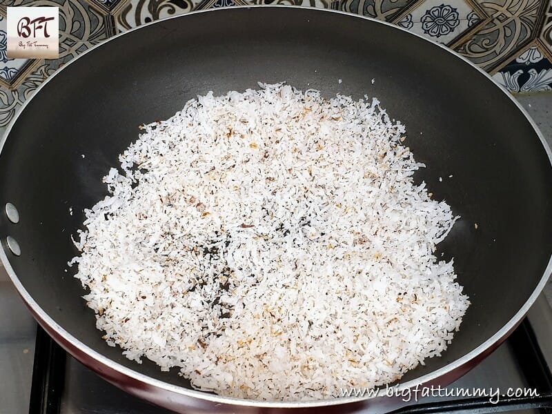 Step 3: Roast the coconut lightly and transfer to a plate.
