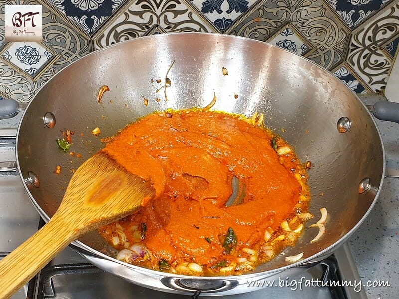 Step 7: Add the ground masala paste and continue to sauté for another 5 to 6 minutes.