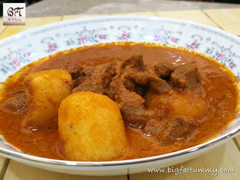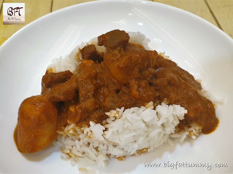 If you find the flavours of a xacuti too bold, then you will like the Coconut Beef Curry (click here for a beef xacuti). Even otherwise this curry is very tasty and will not disappoint xacuti lovers. Serve it doused on hot rice and enjoy it right down to licking of your fingers when you’re done.