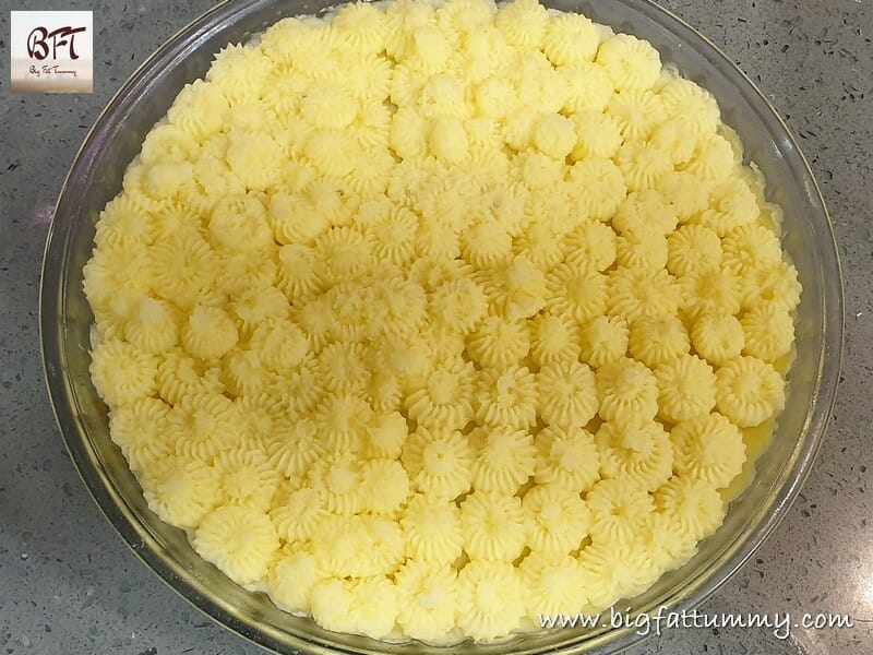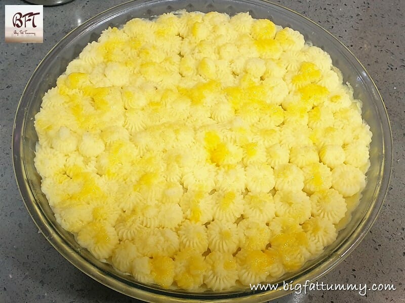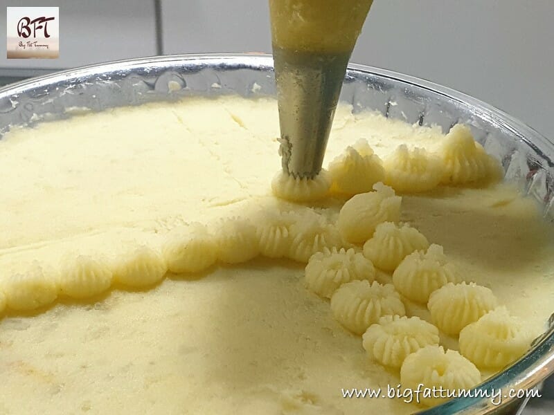 Step 8:     Use a piping bag and nozzle and pipe the remaining potato mash on the pie.