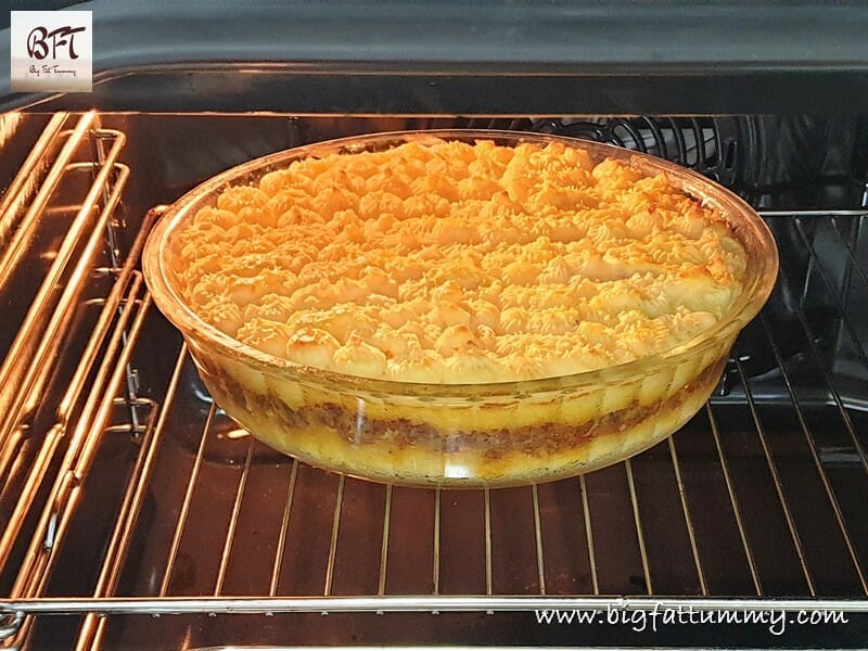 Step 11:     Pre-heat your oven to 200° C for 15 minutes and then bake the pie at 180° C for 50 to 60 minutes till you see light specks of browning. Serve hot.