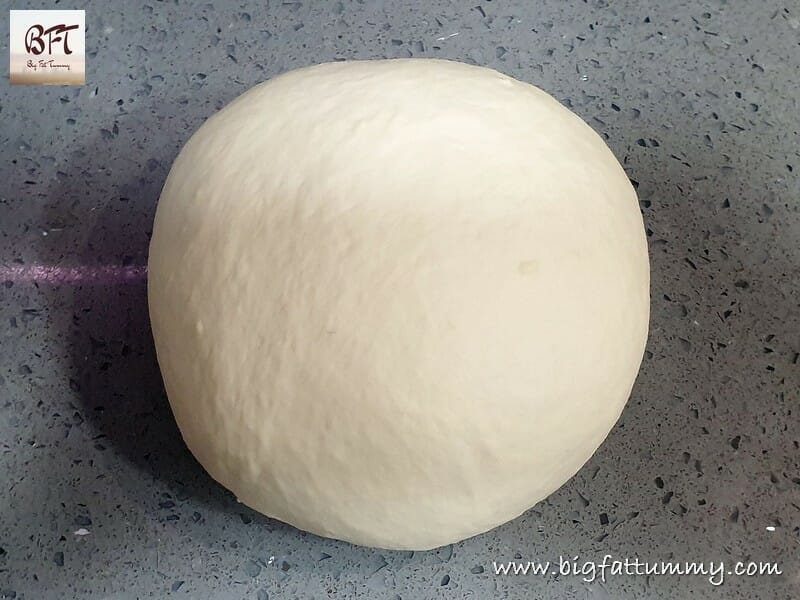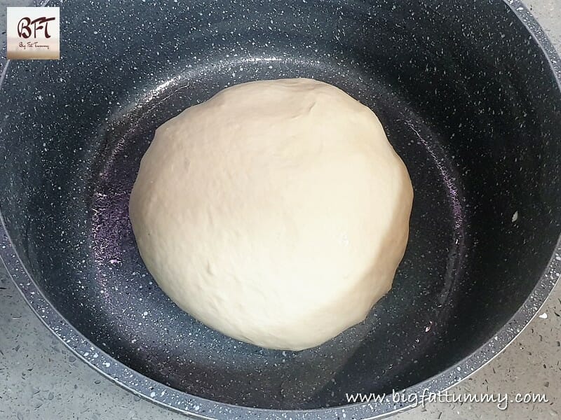 Step 4:     The add the oil and knead for another few minutes till a smooth dough is formed. Transfer to a bowl greased with oil. Cover with cling film or a wet towel and leave aside to proof for 1 ½ to 2 hours. The dough should rise and double.