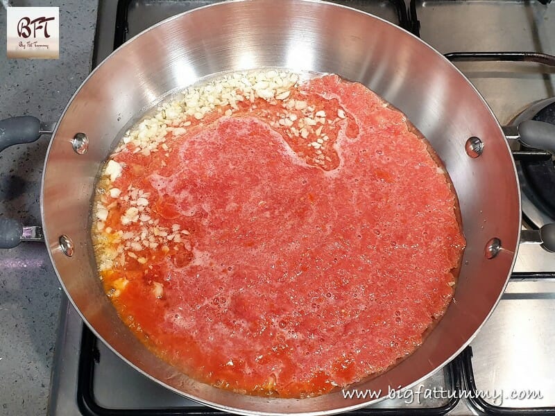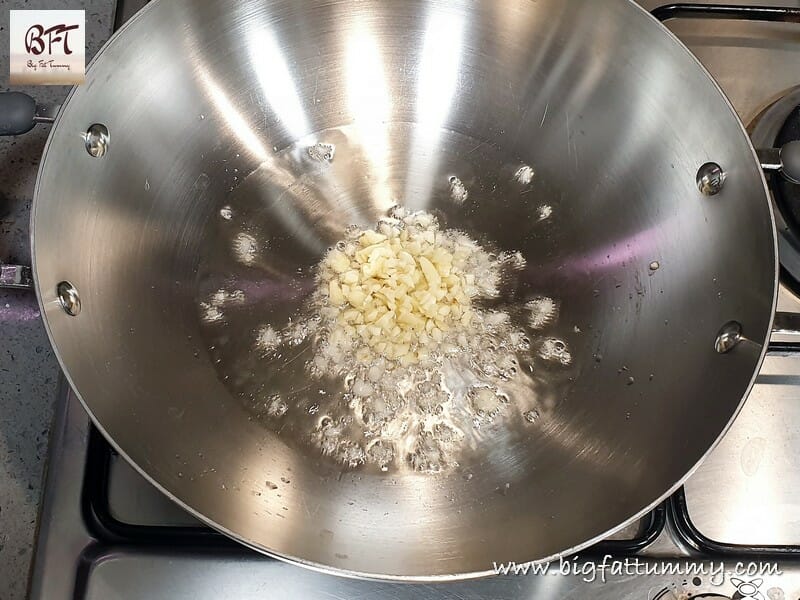 Step 2:     Heat the oil in a pan and sauté the garlic on medium heat for a few seconds.