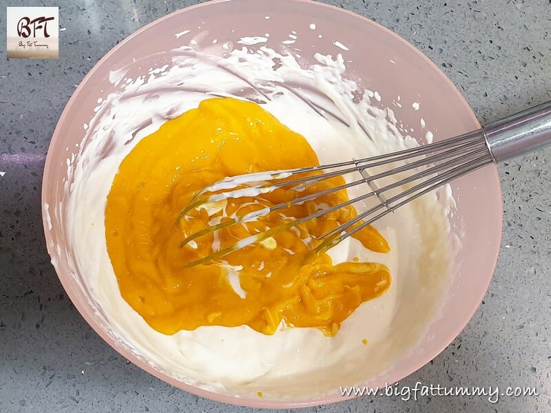 Step 4: Add the mango puree and mix in lightly with whisk.