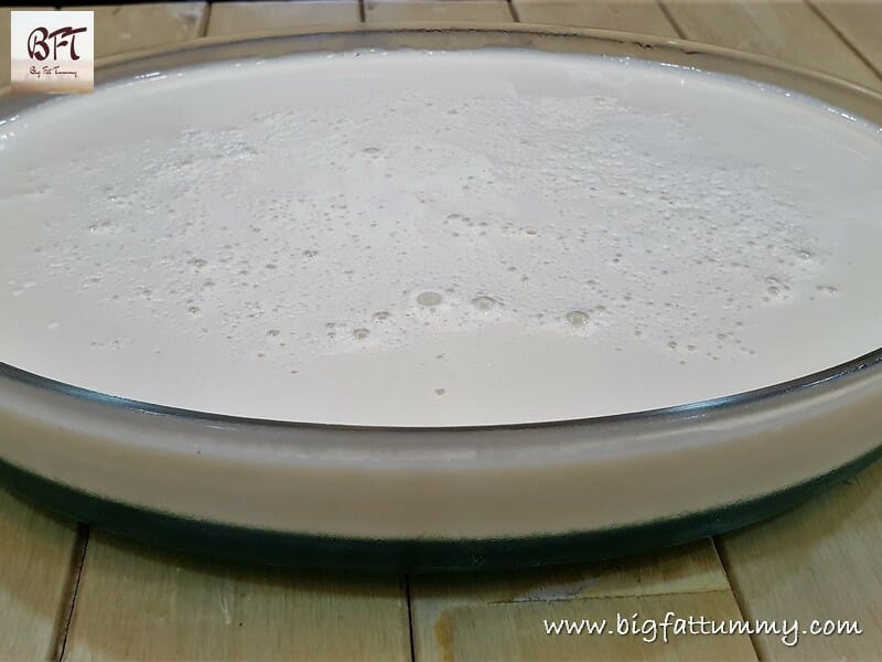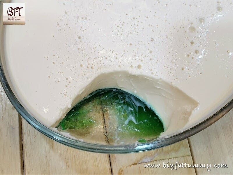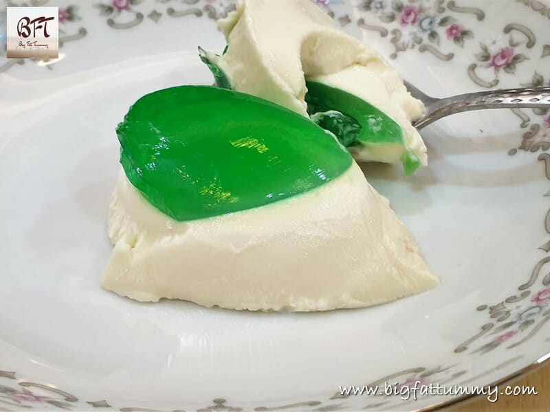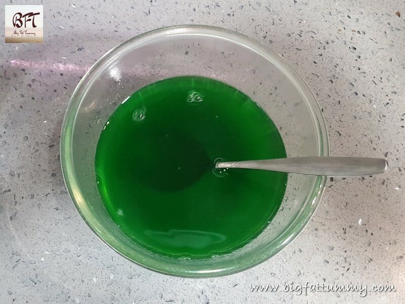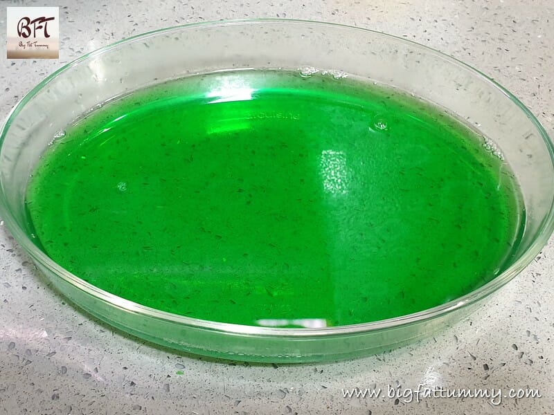 Step 1: Follow the instruction on the packet of jelly to make the jelly (I’ve used lime flavour) and make the jelly. Then cool and set it in a glass dish.
