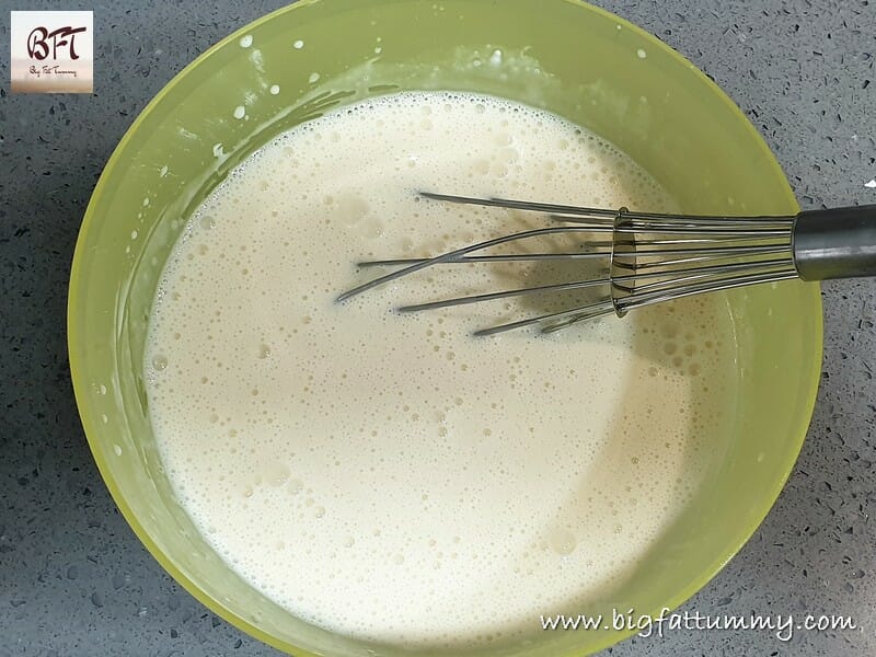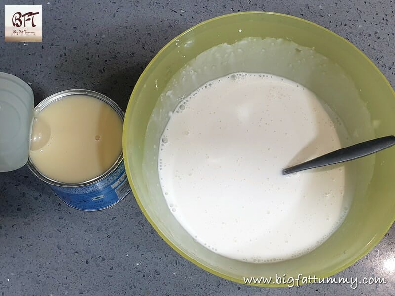 Step 3: Transfer the milk cream to a big bowl and whisk for 2 to 3 minutes. Then add the condensed milk and mix.