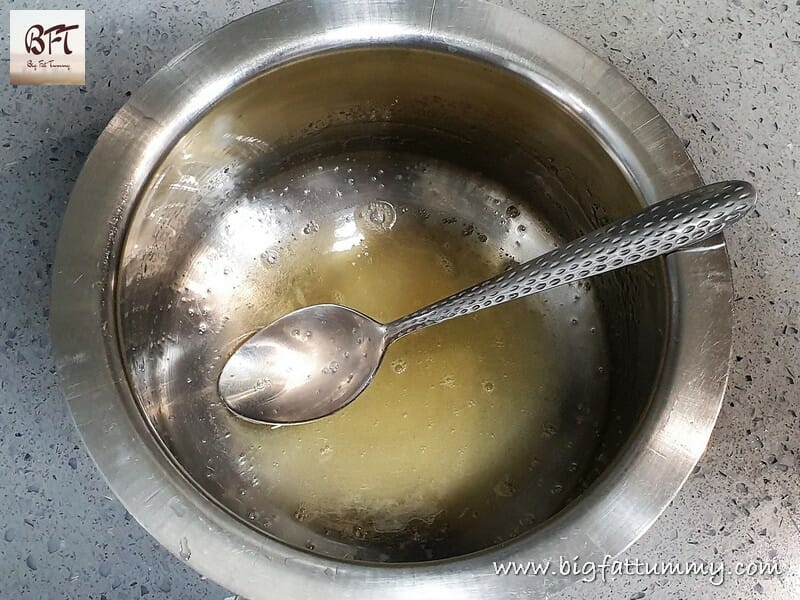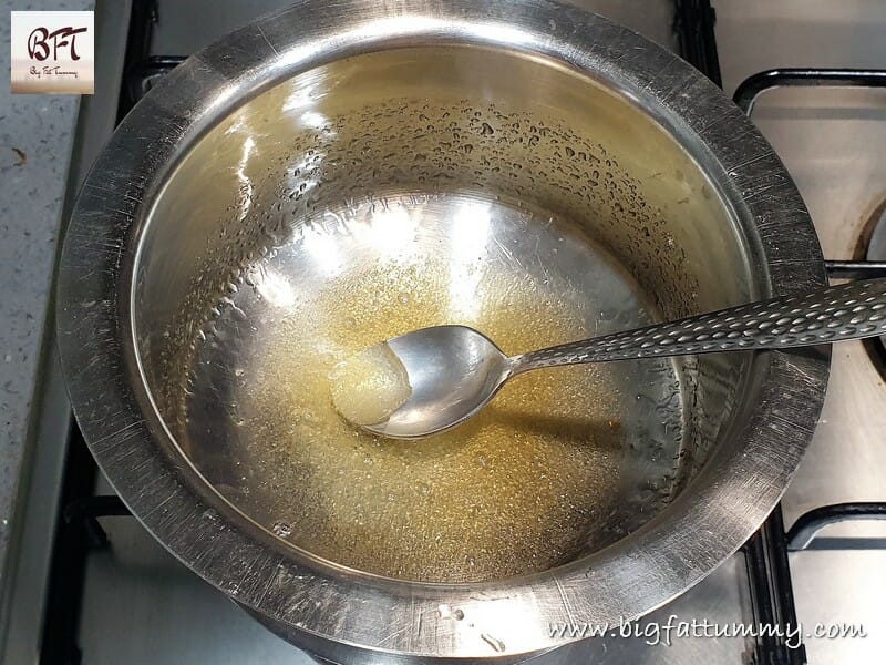 Step 4: Melt the gelatin using a double boiler (see here for how to make and use a double boiler). The gelatin has to just melt. Do not overheat it as it will stink and go bad (also never heat it on direct flame).
