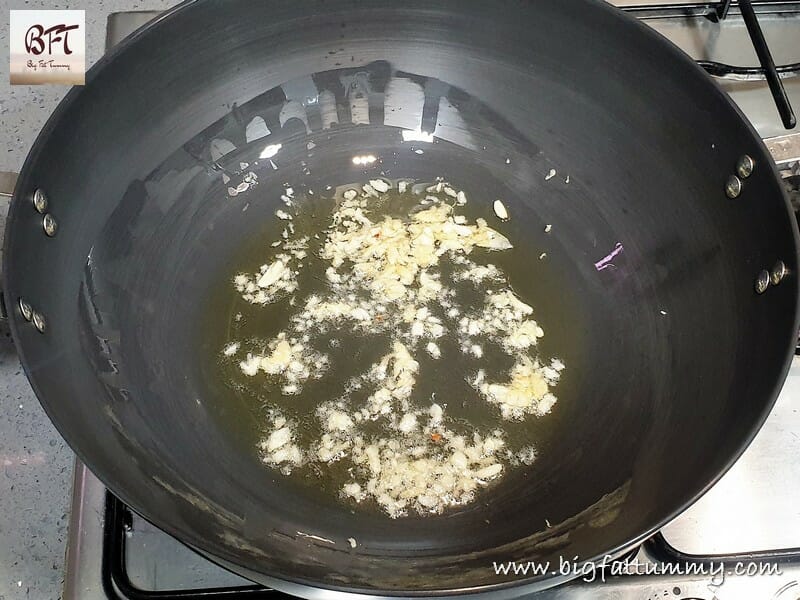 Step 1:     Heat the oil in a shallow pan and add the ginger-garlic and sauté it for 30 seconds on low heat.