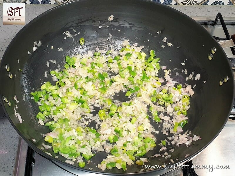 Step 2:     Then add the onions and sauté till translucent on medium heat.