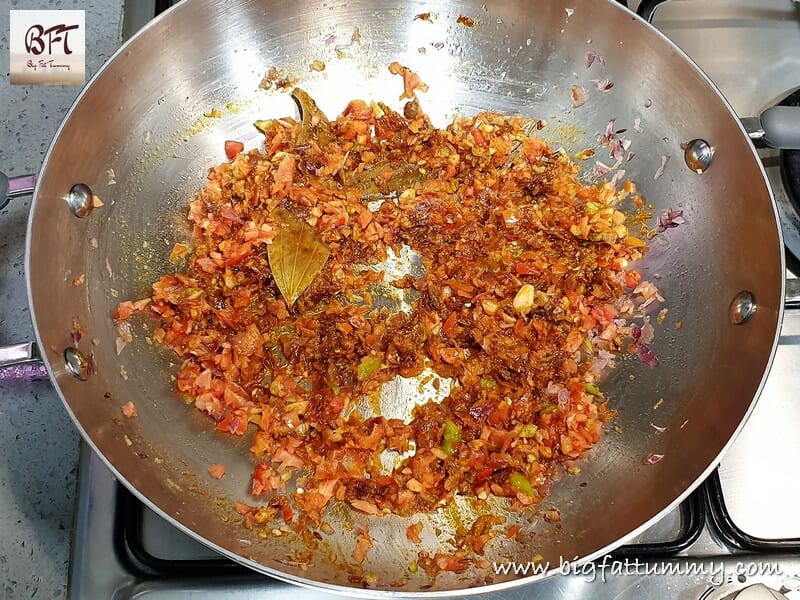 Step 6:     Now add the chopped tomato and and saute till it turns soft.