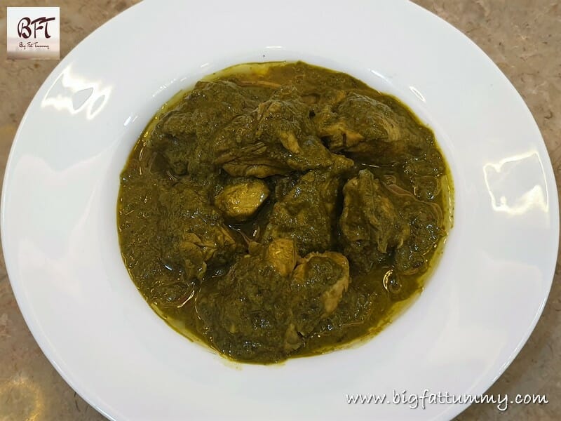 Palak Chicken is a Muglai style chicken dish with a gravy made of blanched and ground spinach leaves. It tastes yummy with Indian bread or with Jeera Rice (Click here)