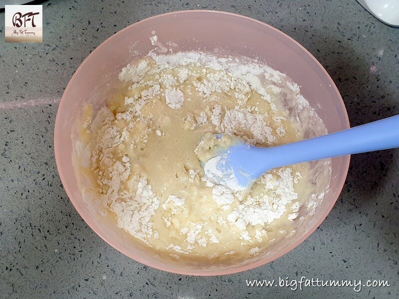 Step 6: Add the wet ingredients to the dry ingredients and fold in till a smooth batter is formed (Do it lightly and don’t over mix). Add some milk and fold in if you feel the batter is dry.