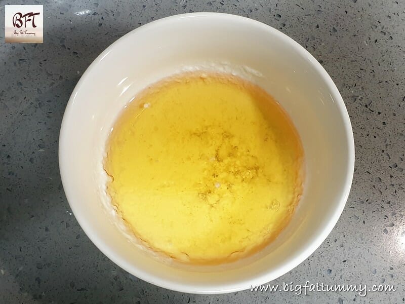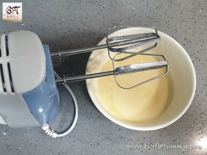 Step 5: Add the vanilla essence, oil and the remaining vinegar to the curdled milk. Whisk with an electric blender for a minute till well blended.