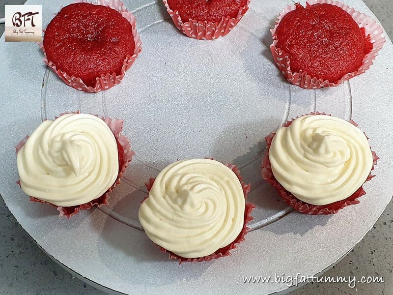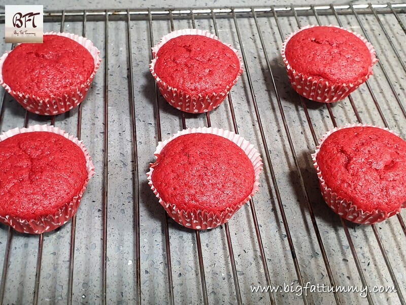 Step 8: Bake in the pre-heated oven at 180° C for 15 to 20 minutes or until a toothpick inserted into the muffin comes clean (middle rack, both coils on). Then remove from the oven and cool completely before you top them with the cream cheese frosting.