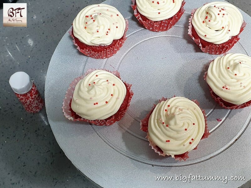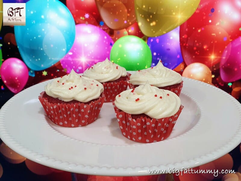 The Eggless Red Velvette Cupcakes with Cream Cheese Frosting are ever popular these days. They are liked by people of all ages including kids. These are also sold at a premium at most outlets. Even though they seem difficult to make – they aren’t and in fact are quite easy – especially if given the right recipe and the steps as I have enumerated here. Try your hand at these soon.