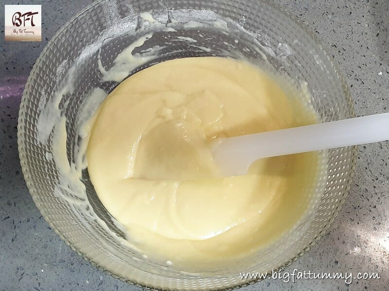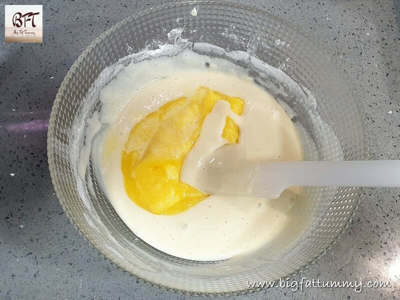 Step 4: Add the sieved flour to the prepared milk mixture and fold in lightly using a silicon spatula using the cut and fold method (see note).