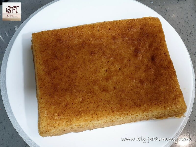 Step 5: Next, add the melted butter and mix well lightly. When well mixed, pour into the baking dish and bake in the pre-heated oven for 30 to 35 minutes (Check if the cake is done by inserting a toothpick or a knife into it. If it is done, it will come out clean). Cool and then demould.