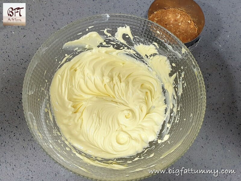 Step 2: Crush the butter biscuits and mix in the melted butter. Spread this on the base of the ring mould. Press lightly. Refrigerate for 15 to 30 minutes.