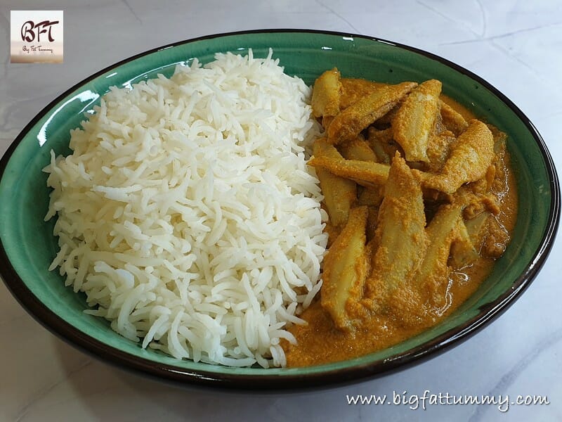 Step 6: Drain and add the anchovies. Add 1 tsp. salt or to taste and cook on medium heat for 2 minutes. Then switch off the heat. Cover the pot and let the curry rest for 10 minutes.